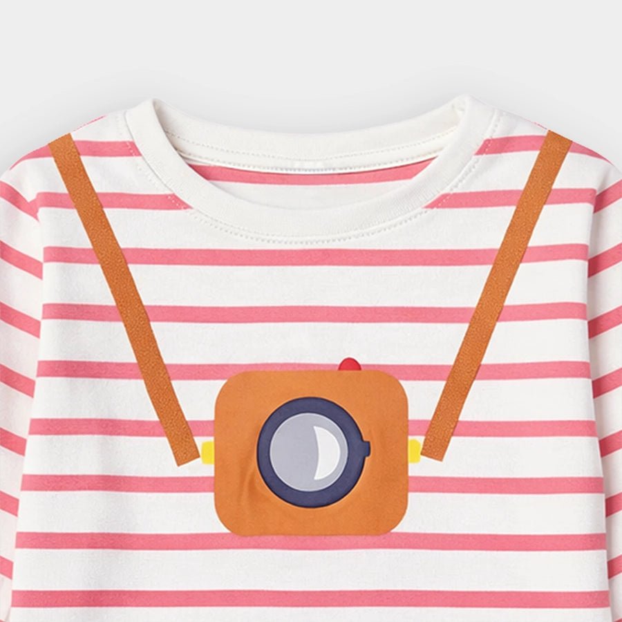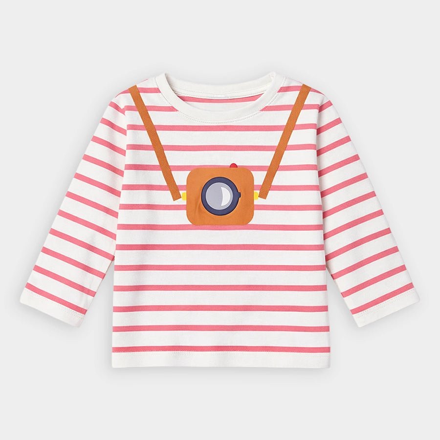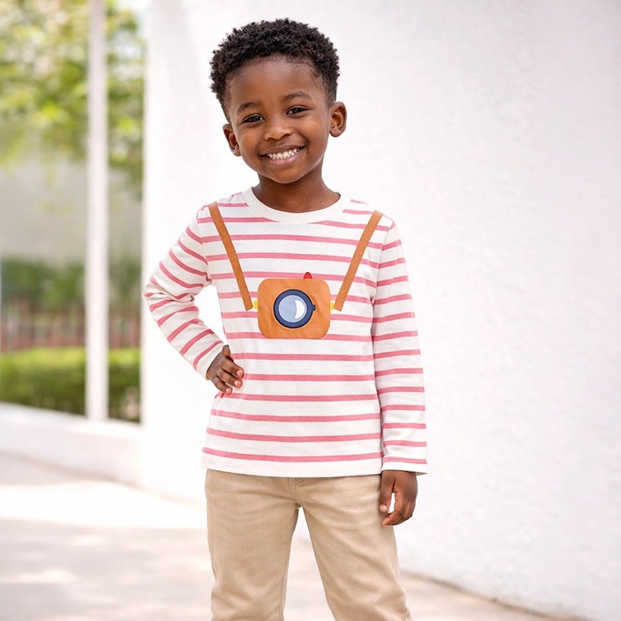 Unisex t-shirt knitted in soft 100% cotton for the summer season. Features full sleeves, striper knit and printed designs. Available in different sizes for kids 0-6Y.
