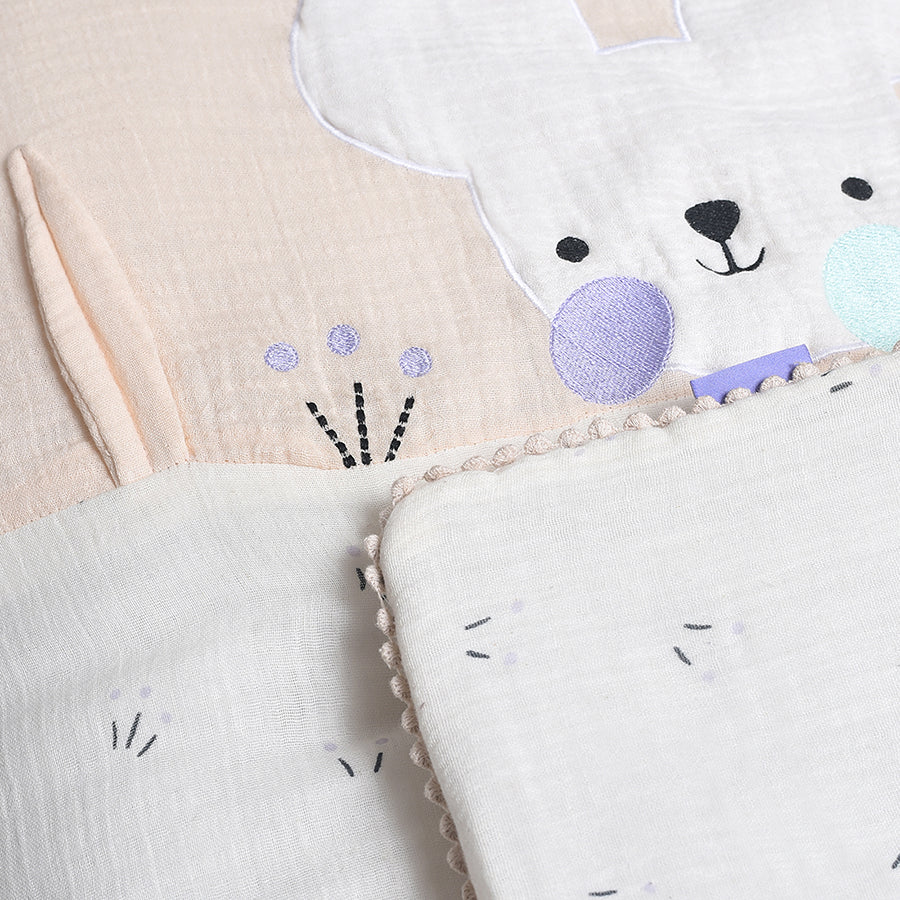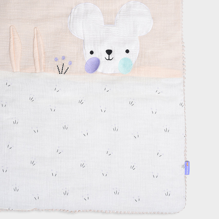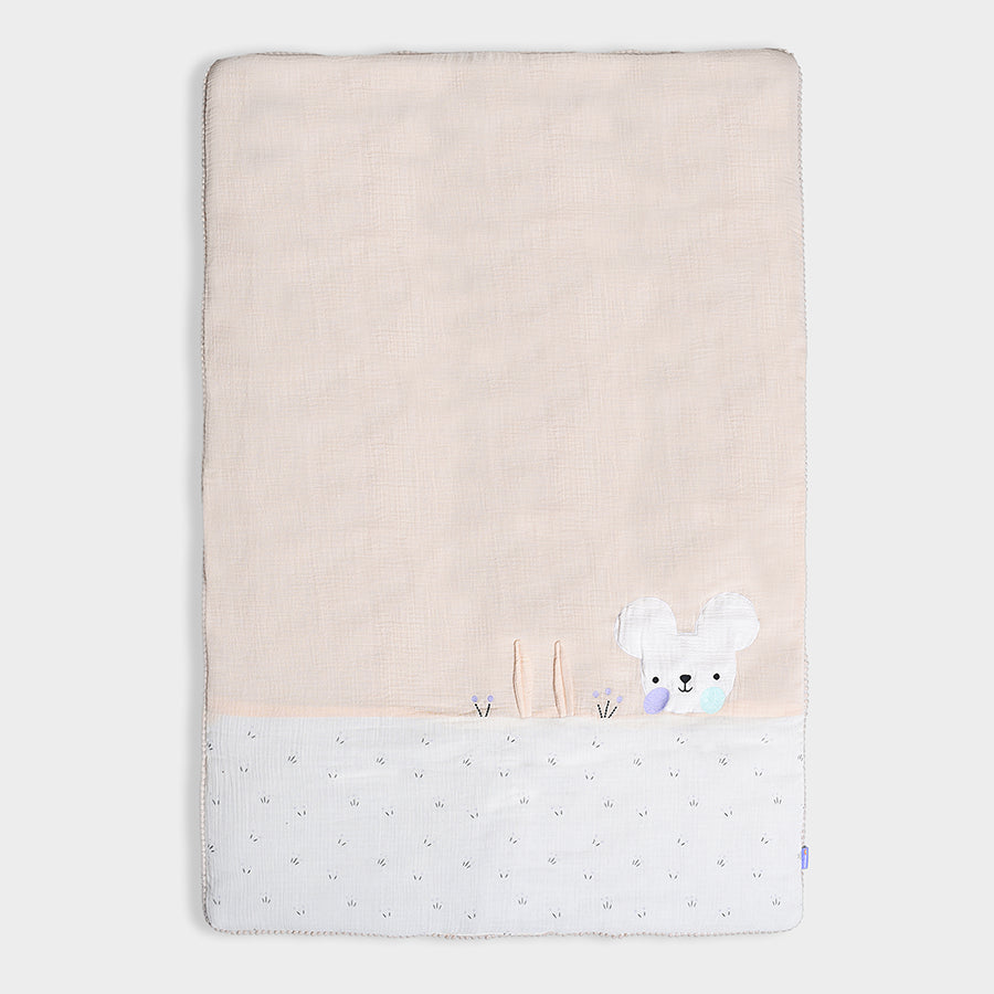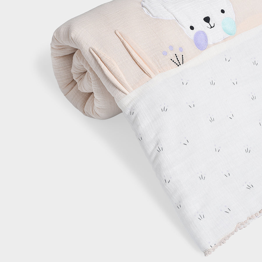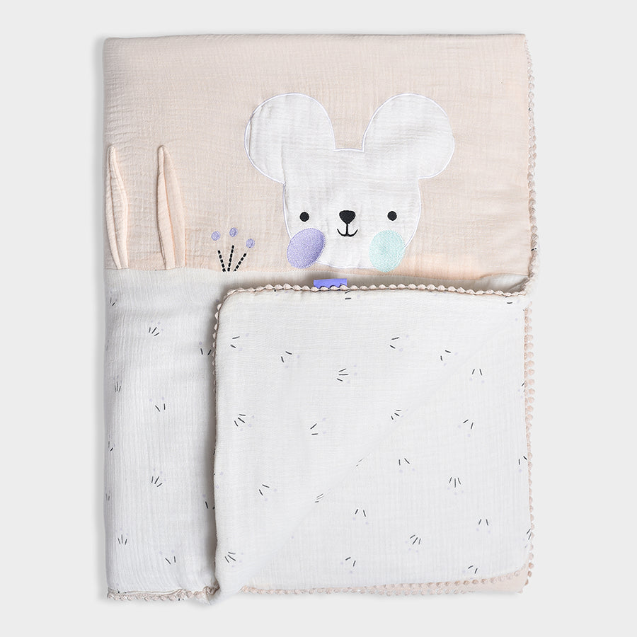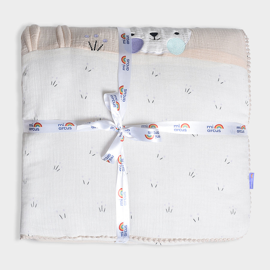 Lightweight, travel-friendly duvet in 100% muslin cotton outer, for covering and keeping a baby warm and comfortable. With soft 100% polyester filling and printed designs, the all-weather cover is best for kids 1-3Y. Size: 130x80 cm
