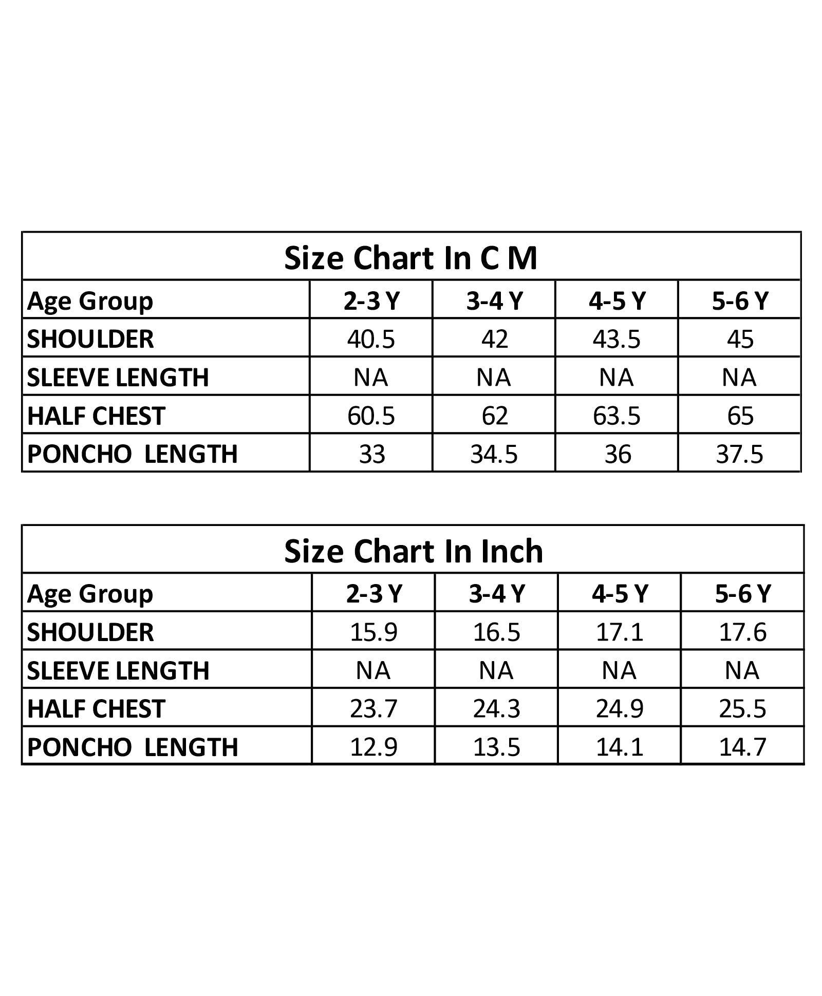 Poncho for girls in soft knit 100% polyester for the winter season. Features a Peter-Pan collar, small button with loop near the neckline for opening, scalloped edge lacing, and embroidered designs at the borders and collar. Available in different sizes for kids 2-6Y.