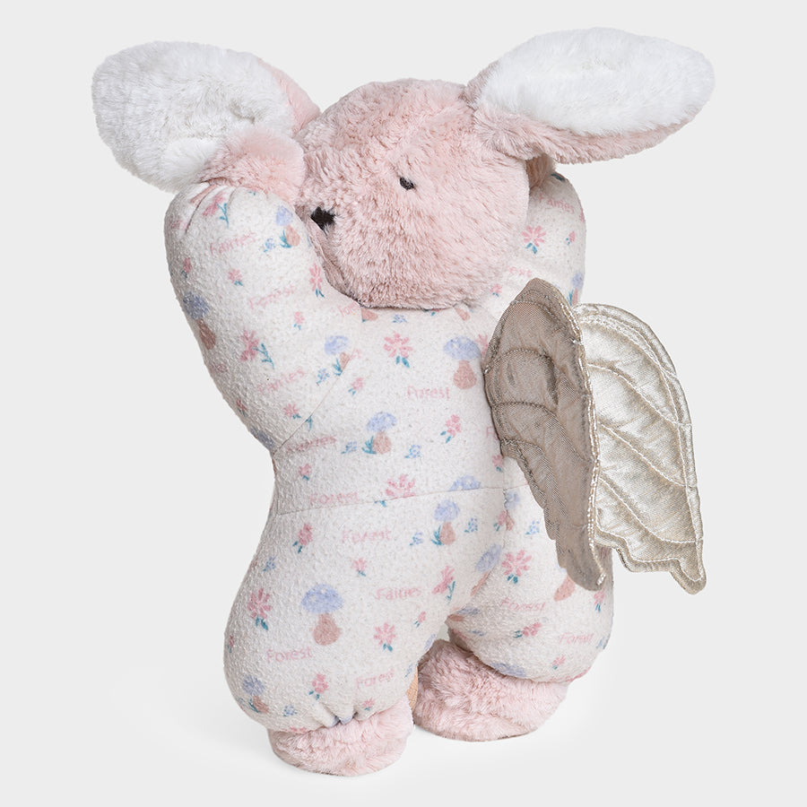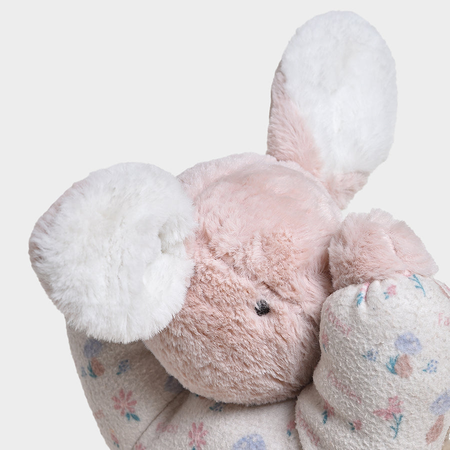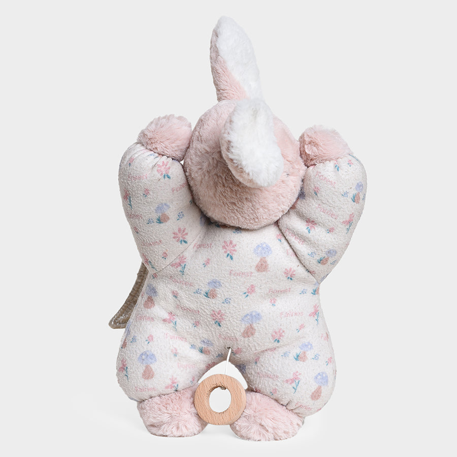Bunny soft toy in 100% polyester outer and 100% recycled polyfiber filling with a musical pull string. Designed to soothe and comfort babies, especially during nap or bedtime and offer emotional reassurance. Can also be used during tummy time or pretend play time. Best for kids 6 months and above. Size: 28x22x7 cm