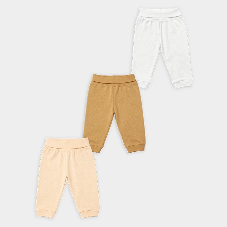 Pack of 3 unisex pyjamas in soft knit 100% cotton for the summer season. Features a fold-over waistband, and all-over pointelle knit designs. Available in different sizes for kids 0-6Y.