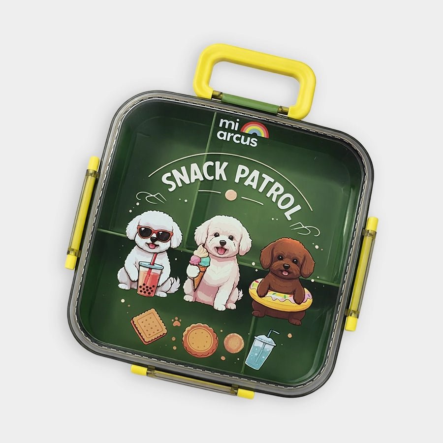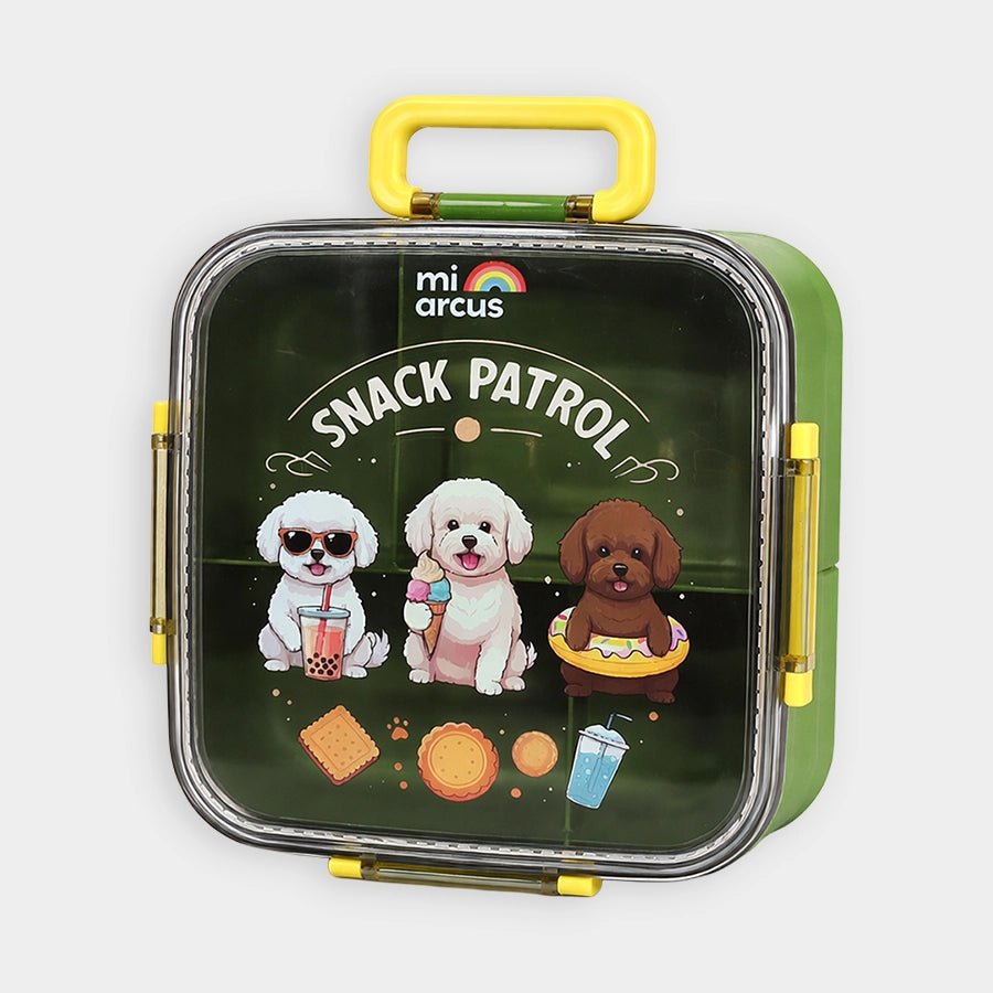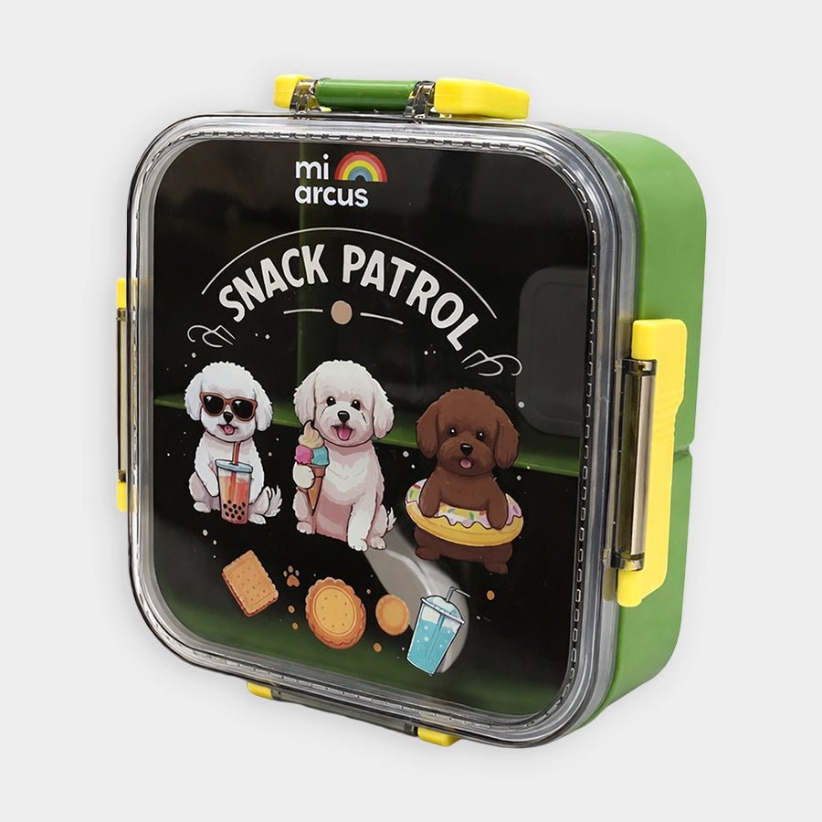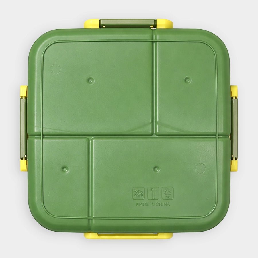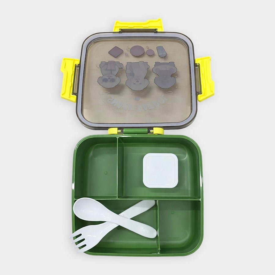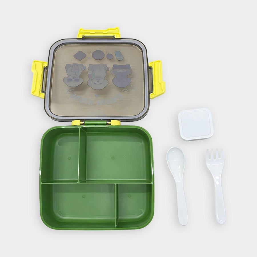 Kids’ lunch box with secure side snap-lock buckles to keep food safely sealed while being easy for kids to open. Includes 4 inner compartments to separate different foods, and 1 removable mini container for dips or snacks. Comes with a matching spoon and fork for added convenience. Durable, lightweight, and perfect for school, picnics, and travel. Best for kids 6M+. Size: 17.7x18.8x6.8 cm