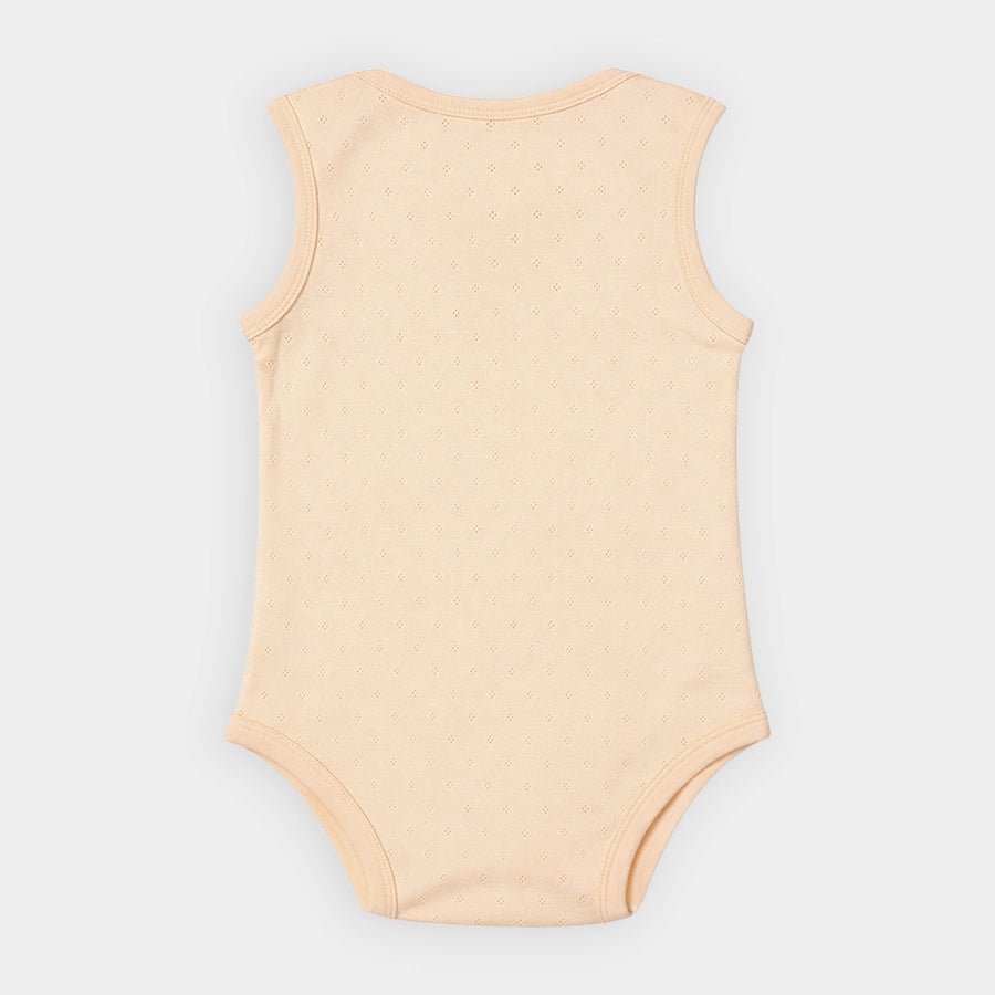 Pack of 3 unisex bodysuits in soft knit 100% cotton for the summer season. Features pointelle-knit designs, enveloped-shoulder design, all-over solid-colour theme, and snap buttons at the crotch for easy nappy changing. Available in different sizes for kids 0-12M.