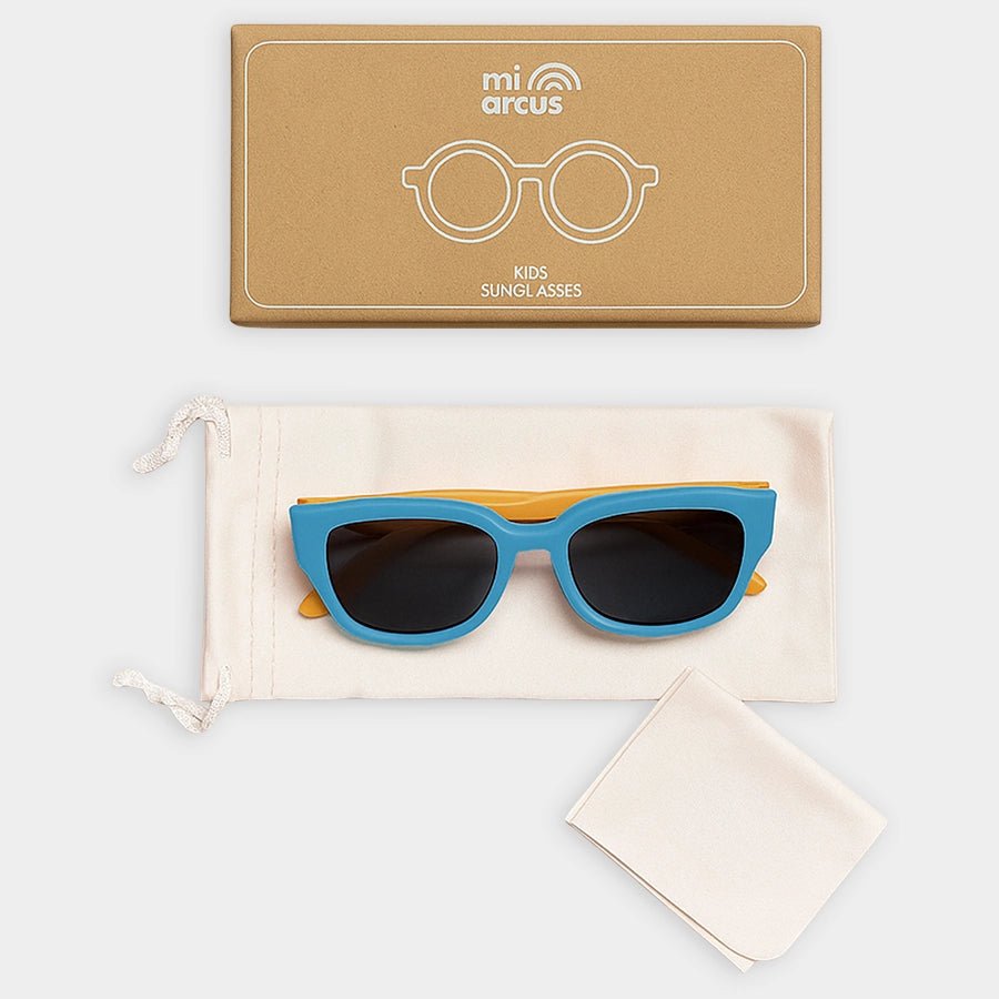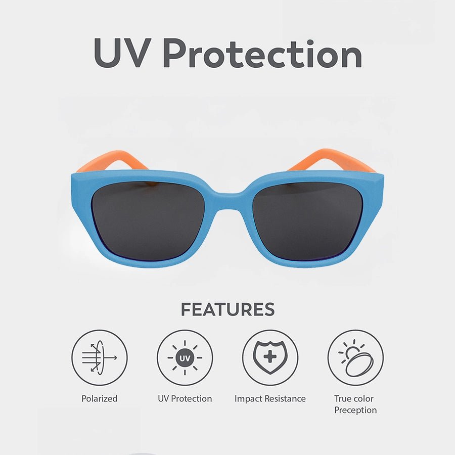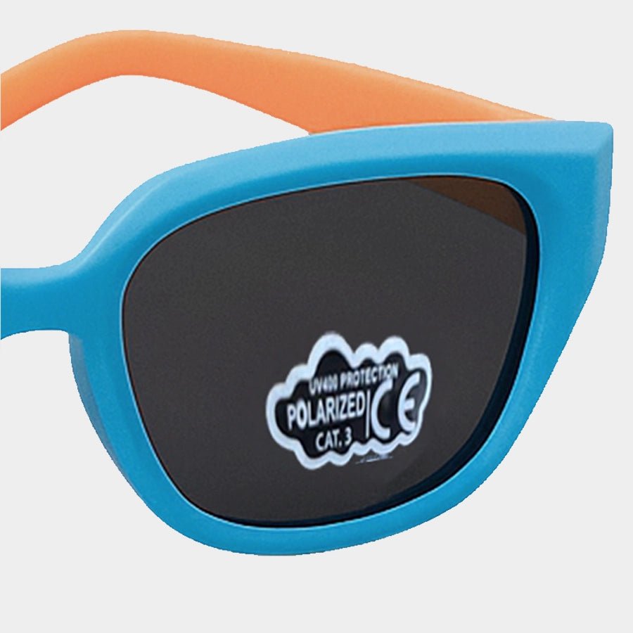 Sunglasses for boys made in premium quality material 100% BPA-free, Phthalate-free, PVC-free, and shatter-resistant TPE frame. Features UV400 protection (category 3 to protect against UVA &UVB rays, offering the most protection for daily wear) and polarized lenses to reduce light glare and eyestrain. Comes with a micro suede cleaning cloth and pouch, and 100% recyclable box packaging. Best suitable for kids 4-6Y. LxWxH: 13x4.7x1.9 cm