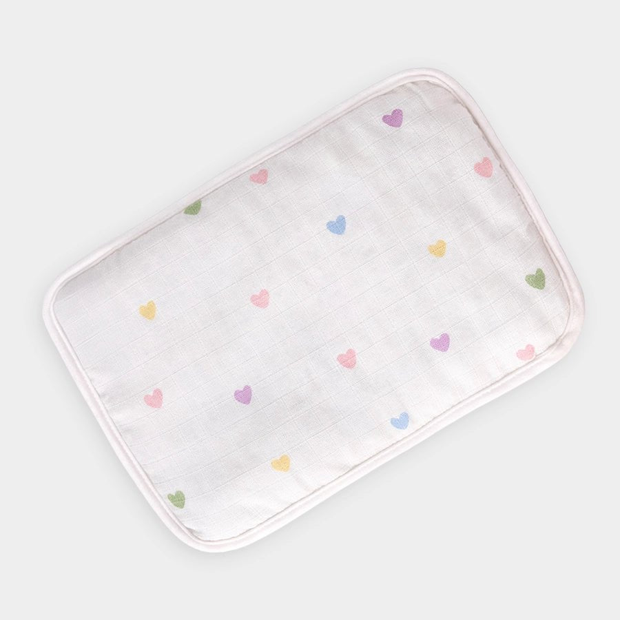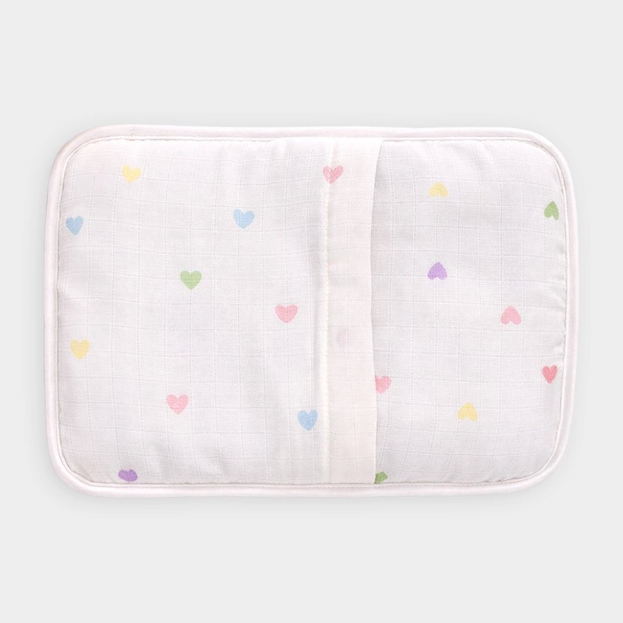 Pillow in soft 100% cotton with mustard seed filling, traditionally used to shape a newborn's head, prevent flat head syndrome, facilitate the alignment of the baby's neck and spine, help avoid allergies, and protect against the common cold. Comes along with a removable outer cover. Best suitable for babies 0-6M. Size: 21x28 cm