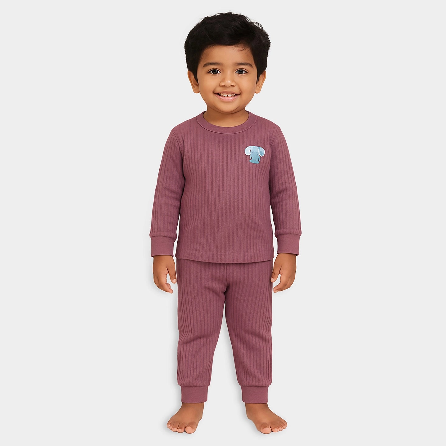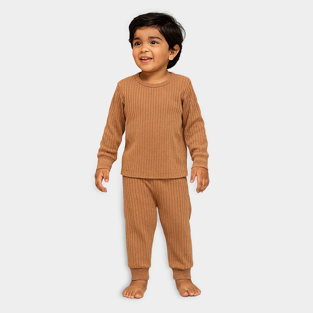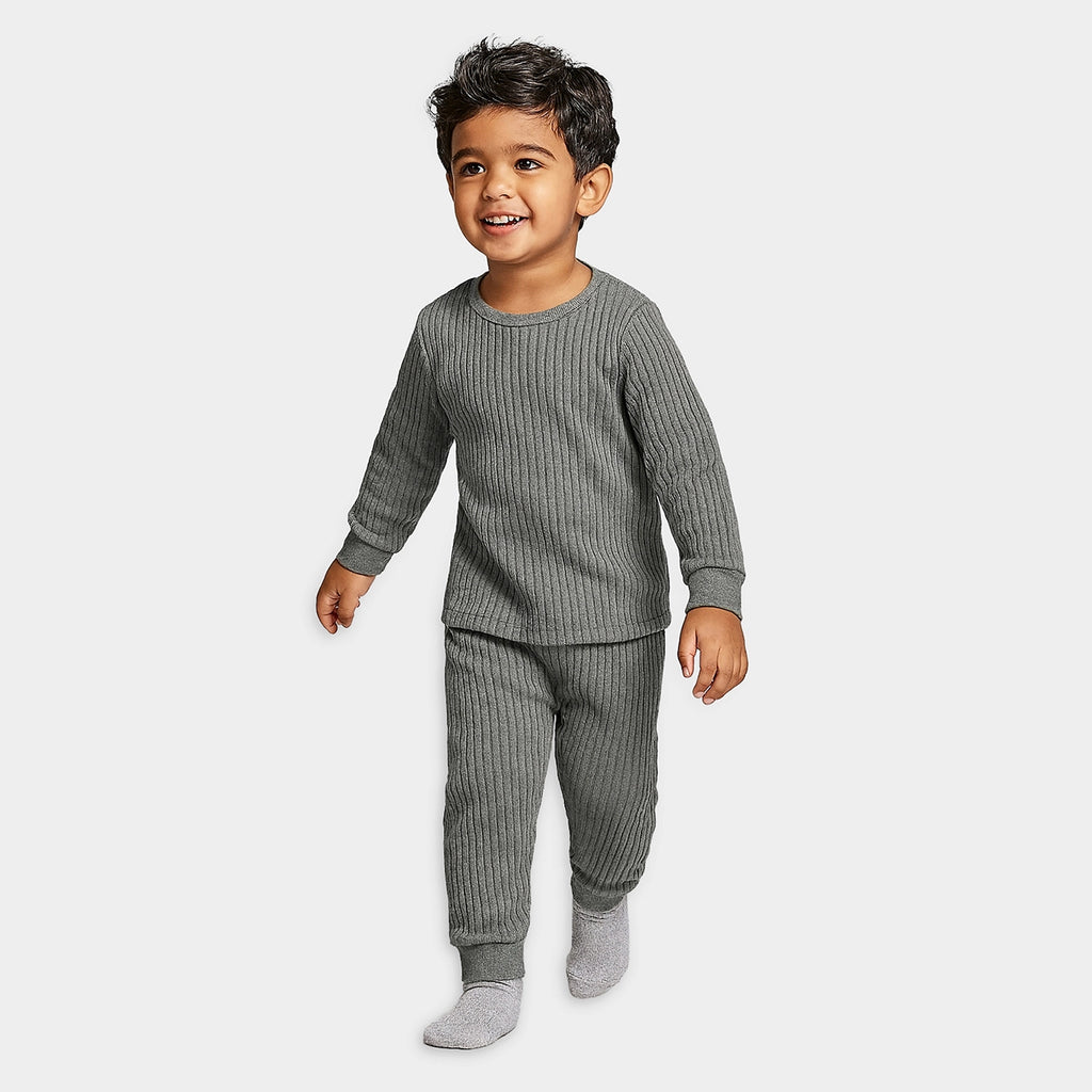 Unisex thermal set in soft knit 75% polyester, and 25% cotton blend for the winter season. Includes pack of 3 thermal tops with full sleeves and vertical stripes. Available in different sizes for kids 12M-6Y.