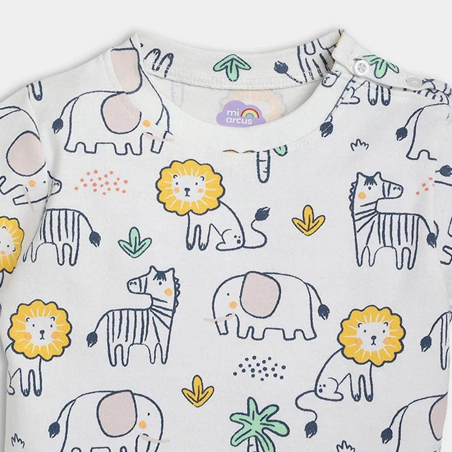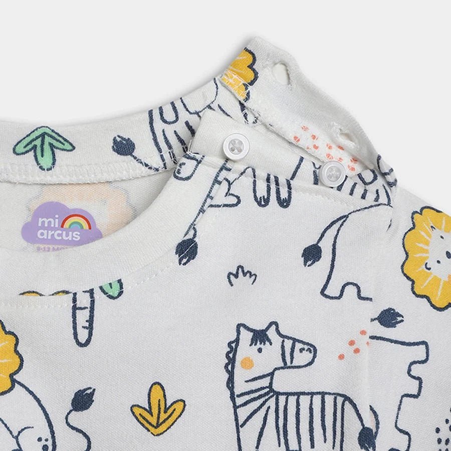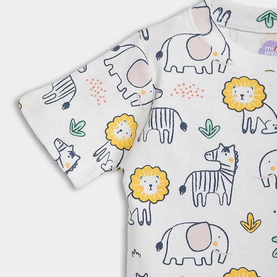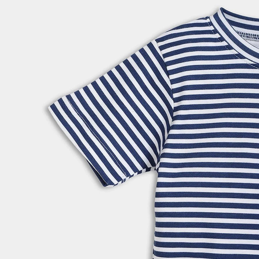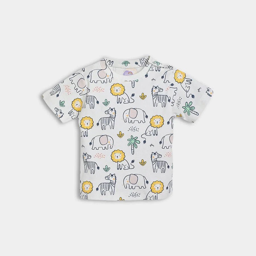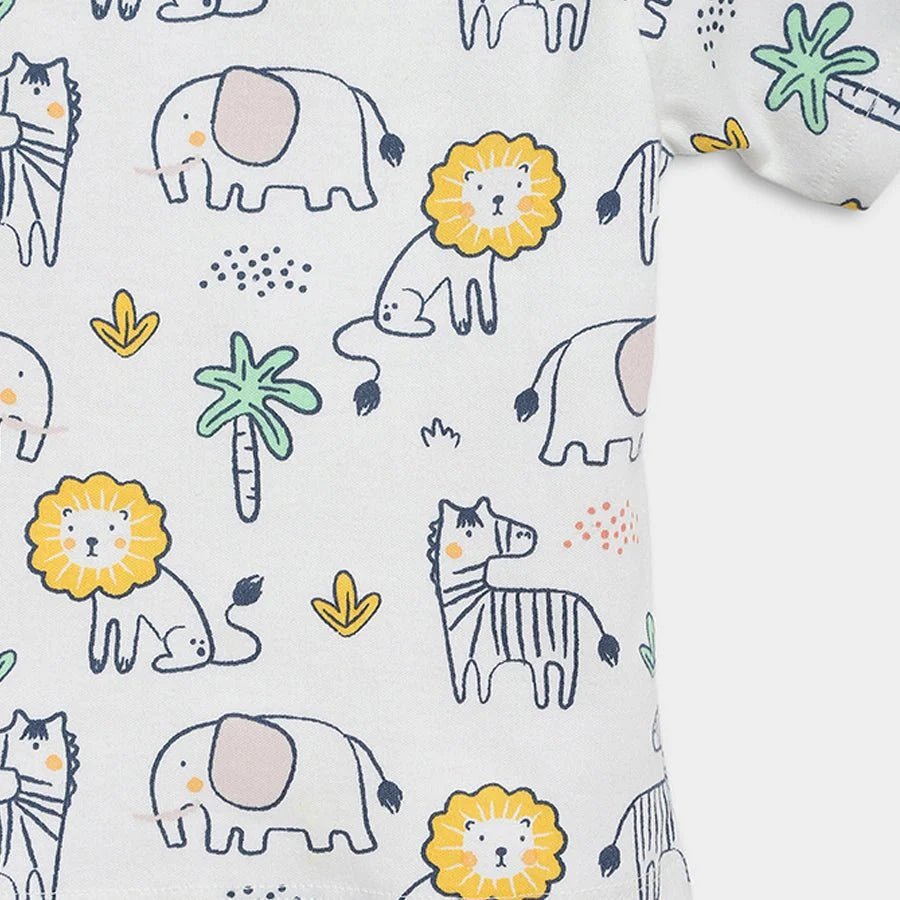 T-shirts set for boys in soft knit 100% cotton for the summer season. Features a round neckline, half sleeves, button opening near the shoulders, and all-over prints. Available in different sizes for kids 0-6Y. Pack of 2