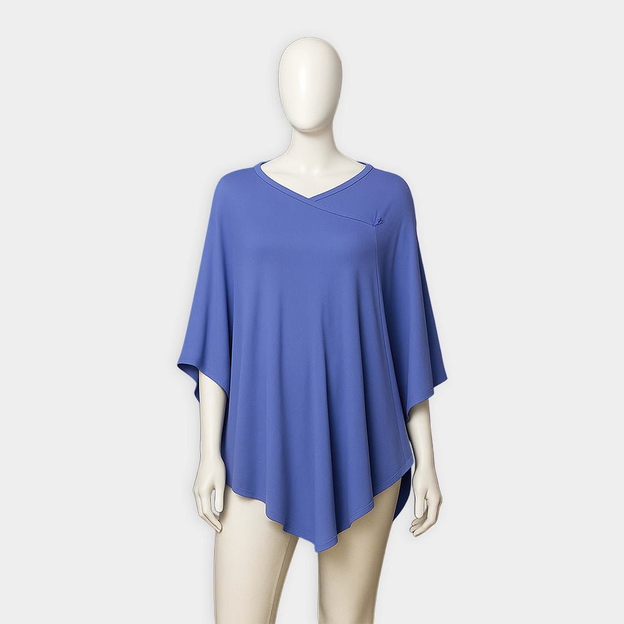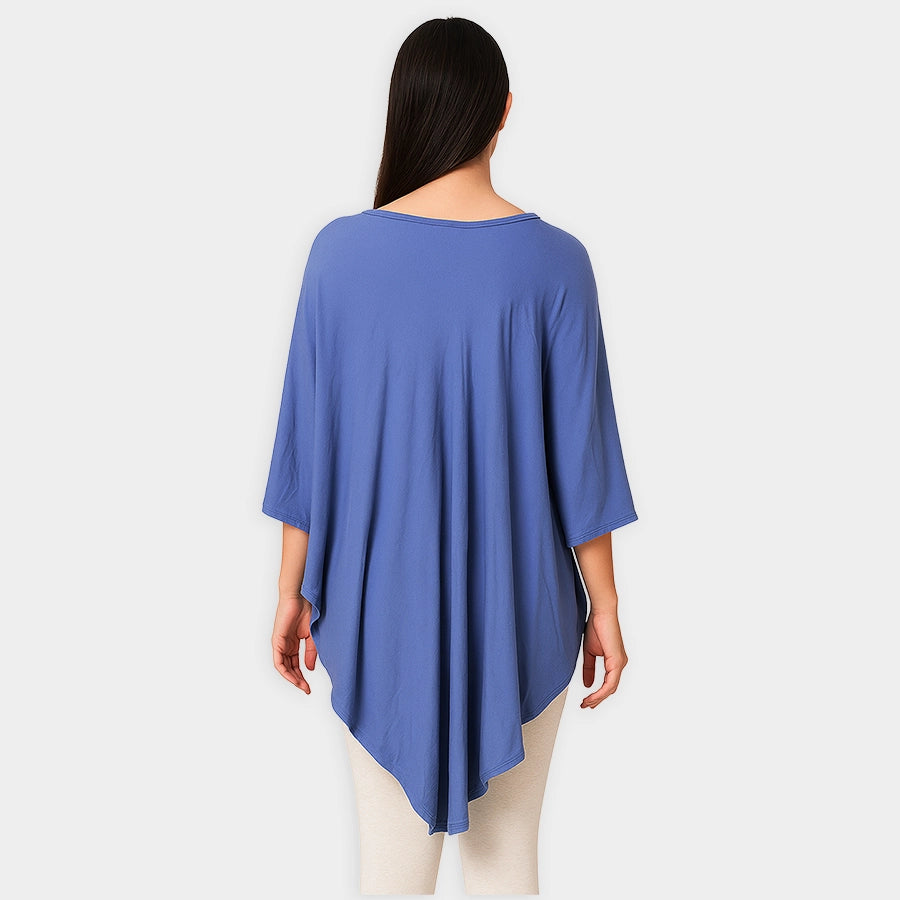 Solid-coloured maternity cape with a centre hook in soft knit 95% modal and 5% spandex blend for the summer season. Free size.