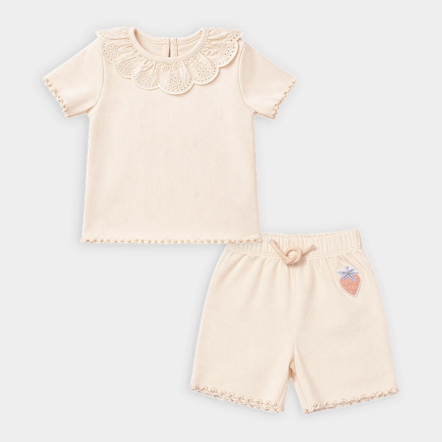 2Pc Blended Rib Knit T-Shirt-Short Set