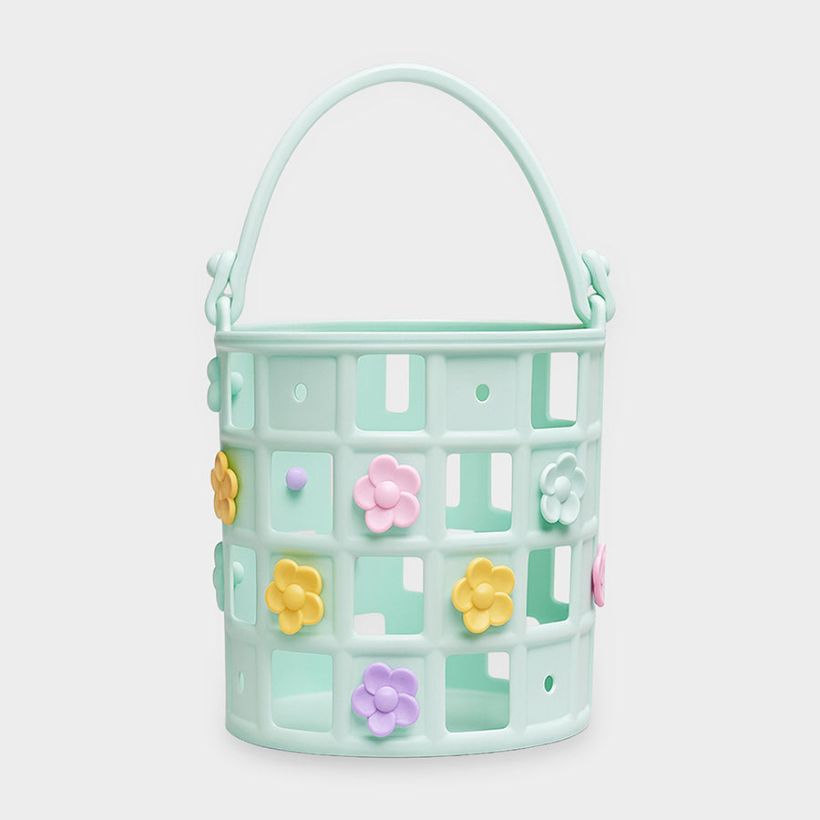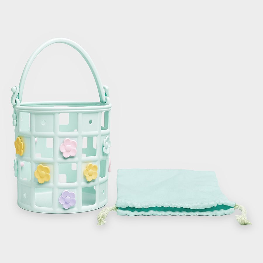 Make playtime more cheerful with this adorable silicone bucket bag, designed with detachable flower-themed accents for a playful touch. Complete with an inside cloth bag, it’s perfect for storing little accessories, toys, or everyday treasures. Lightweight, sturdy, and easy to carry, it adds both style and fun to your child’s routine. Best for kids 2Y+. Size: 14 x 16.2 cm