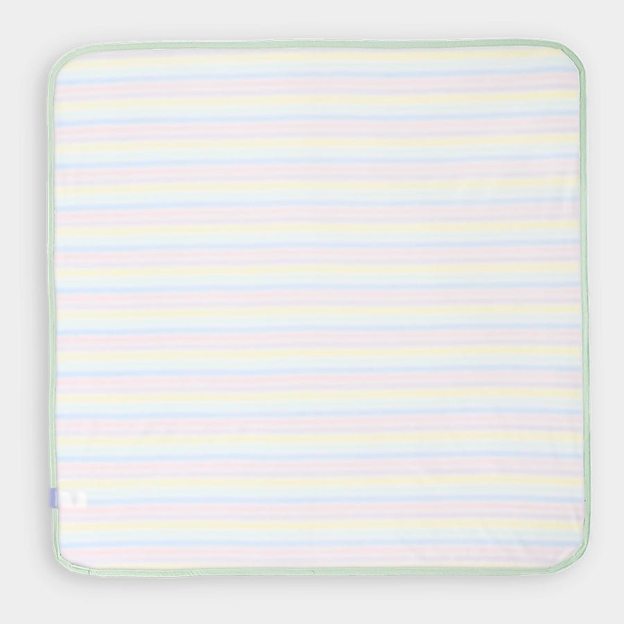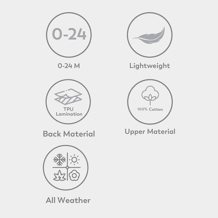Breathable, lightweight, printed mattress protector in soft 100% cotton with TPU Lamination to protect the baby mattress from getting wet while keeping it clean and hygienic. Best for kids 0-24M. Size: 90x85 cm