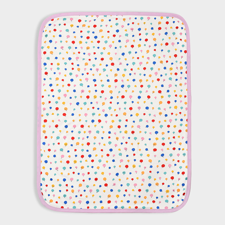 All-weather baby blanket for girls in soft knit 100% cotton. Lightweight, breathable, and gentle on baby skin – the travel-friendly blanket features printed designs on top and a solid-coloured back. Best suitable for kids 0-12M. Size: 85x70 cm