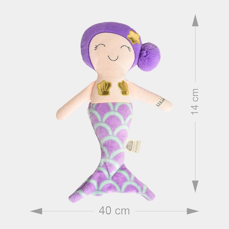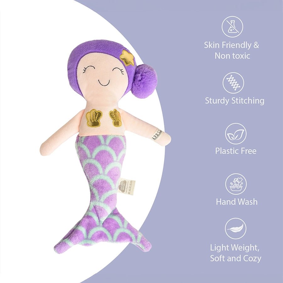 Bring the magic of the seas to your child's play zone with April, the mermaid soft toy! Carefully made from soft and non-toxic polyester fabric with no plastic use, the lightweight and baby-safe mermaid soft toy is a perfect friend that sparks imagination and brightens up your little one’s playtime with snuggles, and storytelling, while adding a splash of fantasy to any nursery. Best suitable for infants and toddlers. Size: 40x14 cm