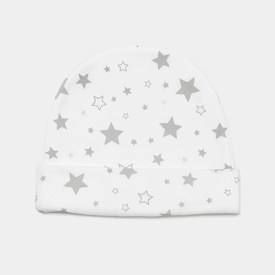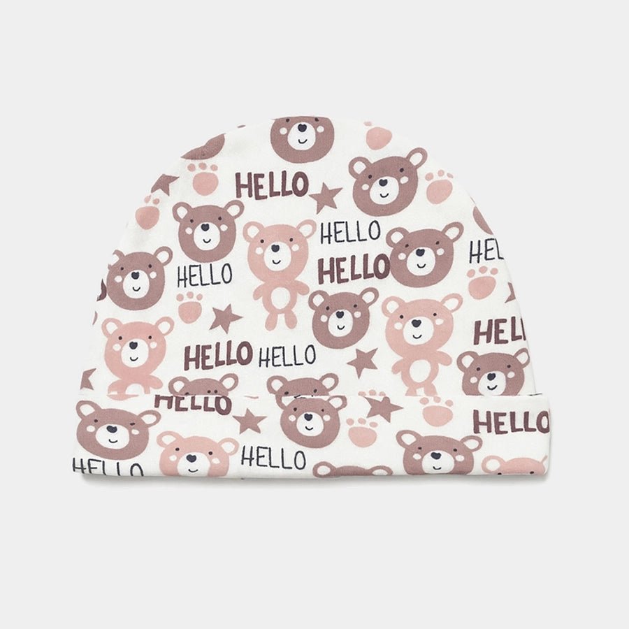 Cap and socks set for boys for the summer season. Includes 2 pairs of socks in soft knit 65% cotton, 26% polyester, 5% polyamide, and 4% elastane blend, and knitted designs and matching printed baby caps in 100% cotton with a foldable edge. Best suitable for kids 0-6M. Pack with 2 pairs of socks and 2 caps.