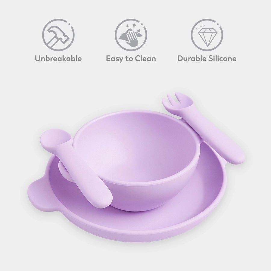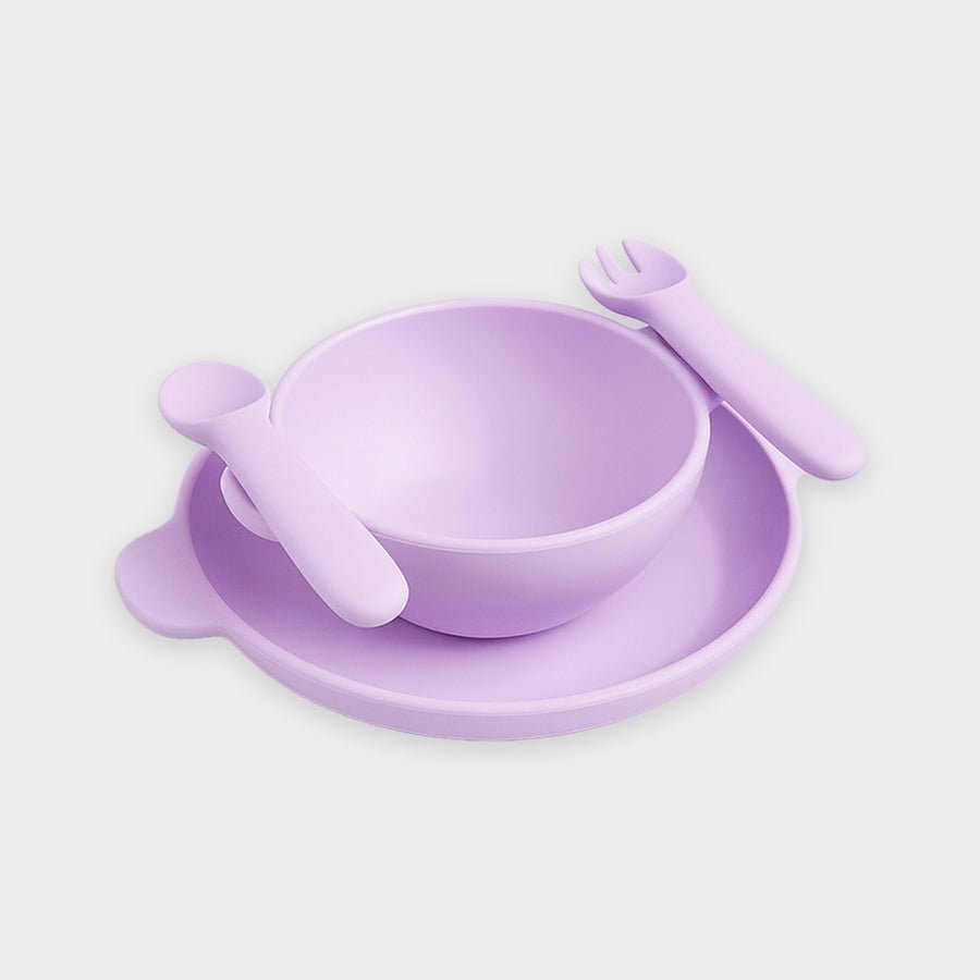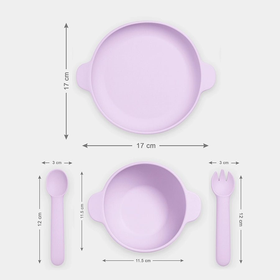 Add a playful touch to your little one’s mealtime with this thoughtfully designed 4-piece dinnerware set. Made from premium, BPA-free and PVC-free, food-grade 100% silicone, it is safe, durable, and perfect for everyday use. Includes a solid-coloured plate with grippy magnetic handles, a matching bowl with a magnetic handle, and a fork and spoon with magnetic inserts that easily stick to the plate and bowl handles for added convenience. Naturally non-slip and unbreakable, the set is built to make self-feeding easier and stress-free for both parents and kids. Best suitable for kids 6M-4Y. Pack of 4. Size: Plate: 215x174.5x25 mm, Spoon: 120x29.5x16 mm, Fork: 120x29.5x16 mm, Bowl: 133.7x80x72 mm