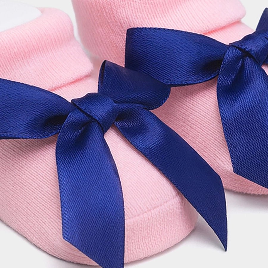 Socks and headbands set for girls for the summer season. Includes pack of 3 headbands in soft knit 95% polyester and 5% spandex blend featuring a stitched decorative flower on top, pair of 3 socks in soft knit 68% cotton, 27% polyester, 2% nylon, and 3% spandex blend with decorative appliques on top, & a fold-over shaft. Best suitable for kids 0-12M. Set of 3.