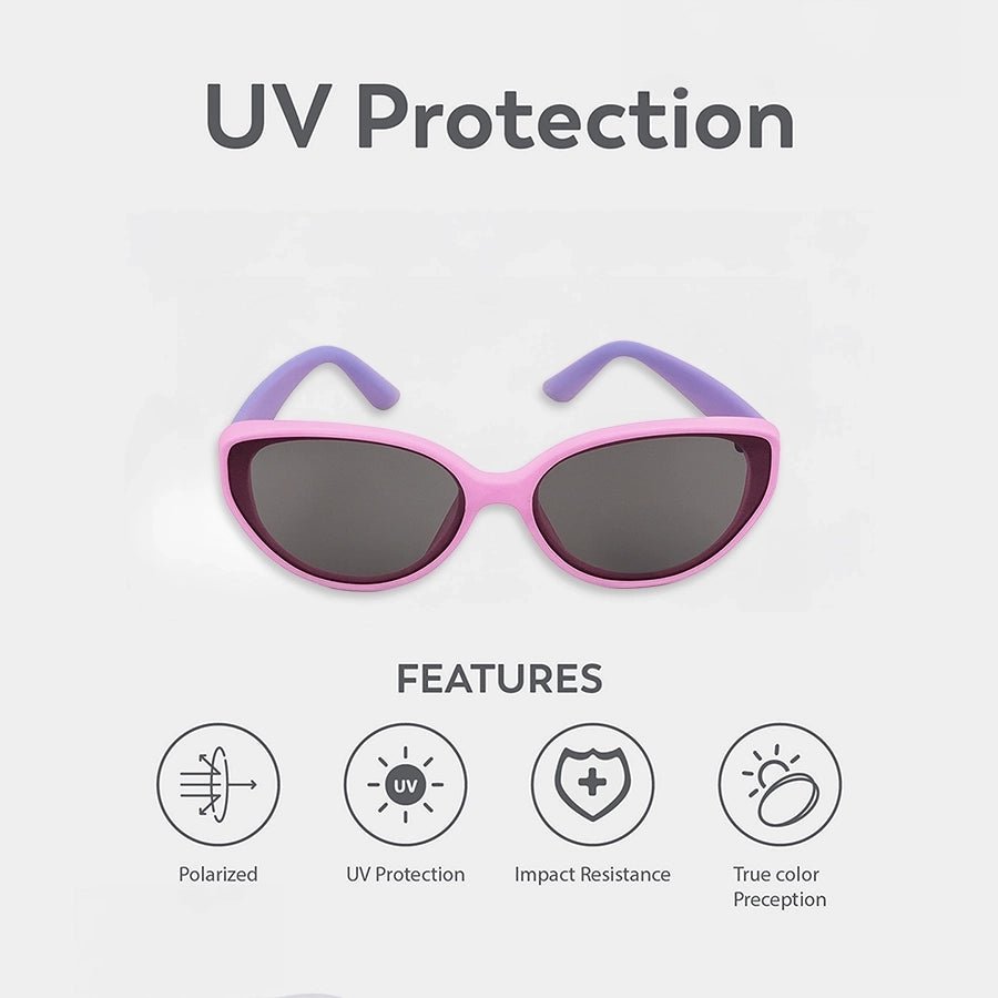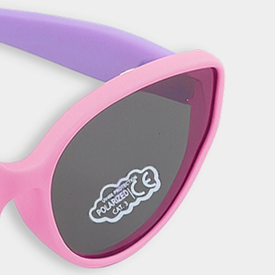 Sunglasses for girls made in premium quality material 100% BPA-free, Phthalate-free, PVC-free, and shatter-resistant TPE frame. Features UV400 protection (category 3 to protect against UVA & UVB rays, offering the most protection for daily wear) and polarized lenses to reduce light glare and eyestrain. Comes with a micro suede cleaning cloth, and pouch, and 100% recyclable box packaging. Best suitable for kids 4-6Y. LxWxH: 13x5.7x1.5 cm
