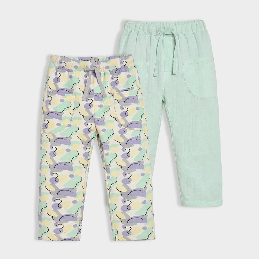 Unisex pyjamas in soft knit 100% cotton for the summer season. Includes 1 solid-coloured and 1 printed pyjama with a concealed elasticised waistband, inserted drawcords, 2 patch pockets on the sides, and a dummy fly. Pack of 2. Available in different sizes for kids 12M-6Y.