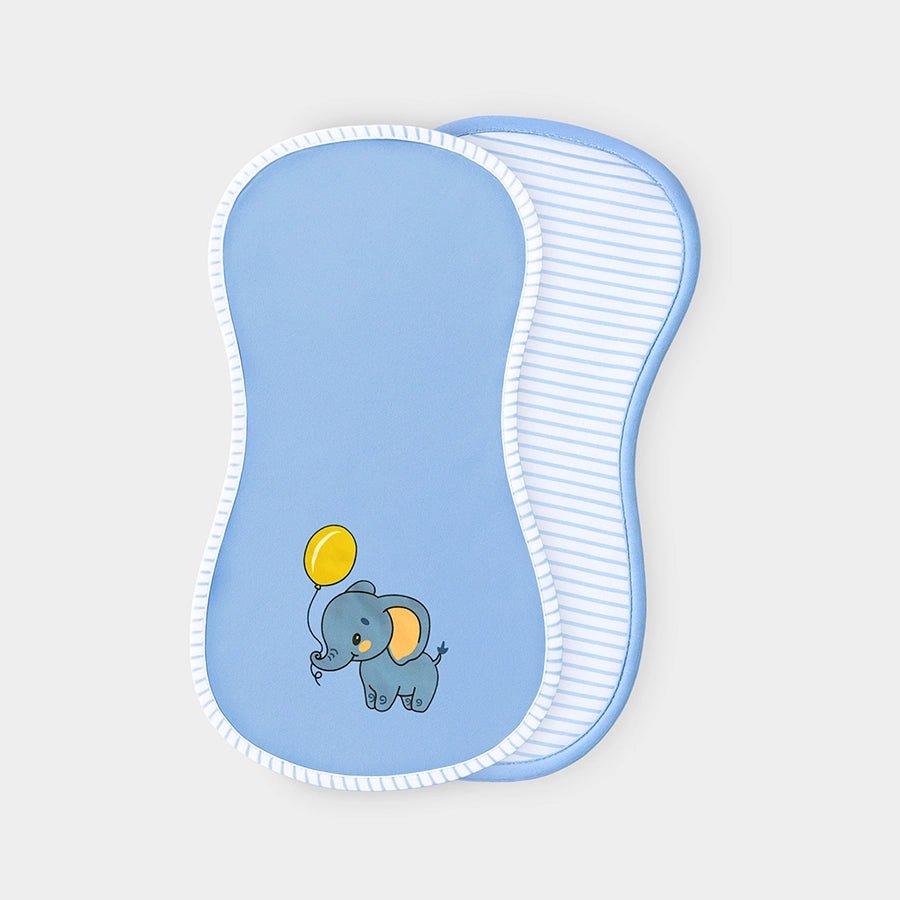 Burp cloths in soft knit 90% cotton, and 10% polyester for all-weather use. Perfect for neatly fitting over the shoulder at burp time and protecting your clothing from baby spills. Best for kids 0-12M. Pack of 2. Size: 52x25 cm