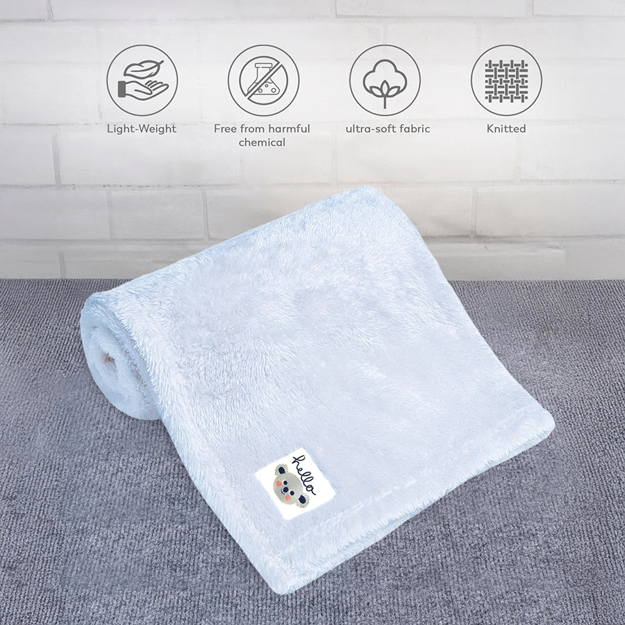Baby blanket in soft knit 100% polyester to keep warm and comfortable in the winter season. Lightweight, breathable, and gentle on baby skin – the travel-friendly blanket is best suitable for kids aged 0-12M. Size: 90x70 cm