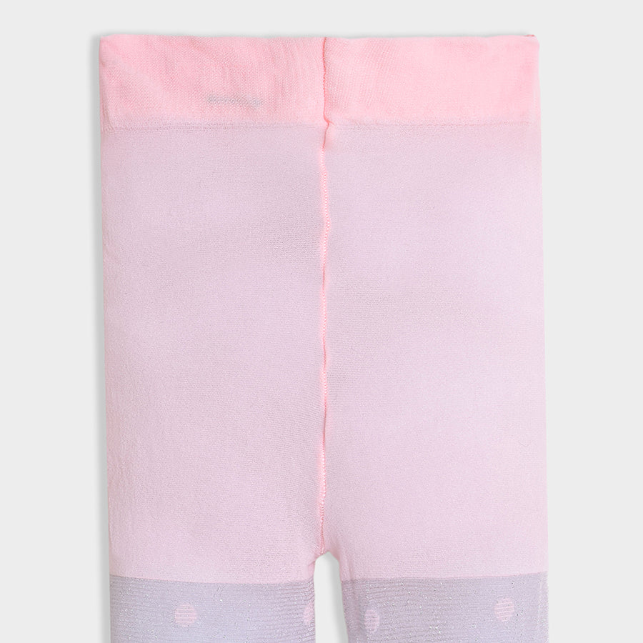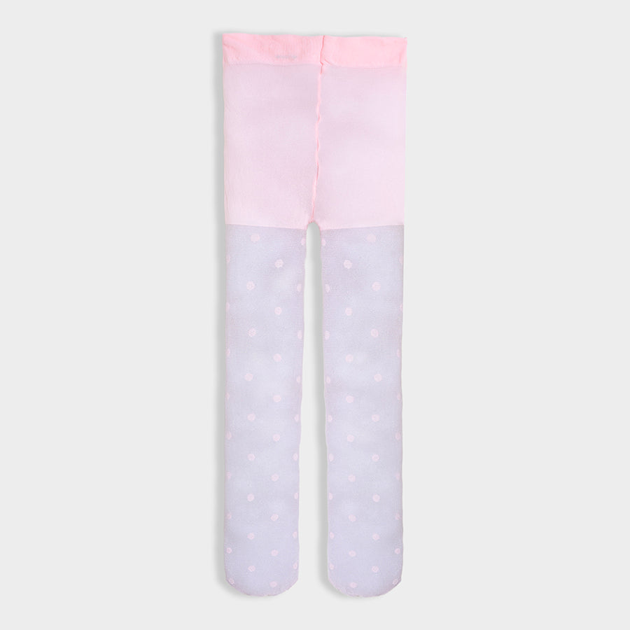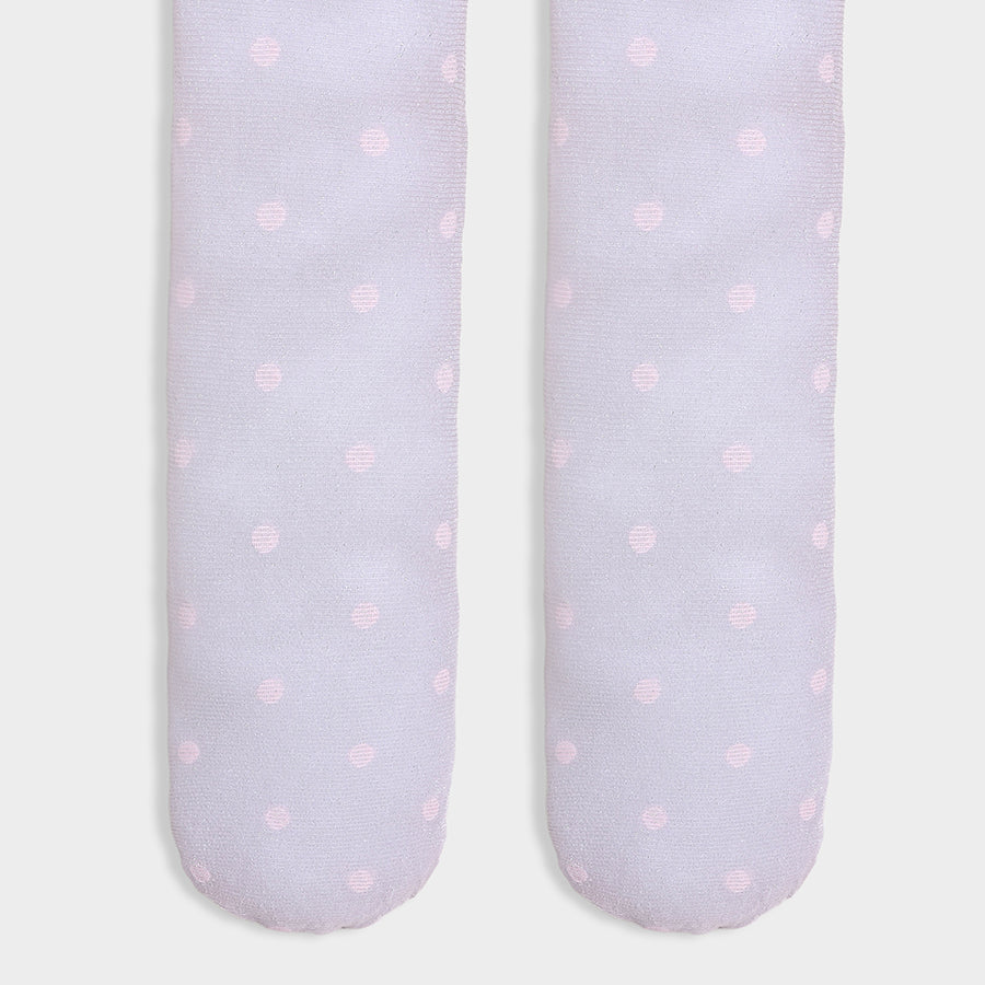 Full-length wearable stockings for girls in soft knit 80% polyamide, 12% polyester, and 8% elastane blend for all weather. Features a polka-dot design, full-length, legging-style fit for easy wear, and elasticated waist. Available in different sizes for kids 6M-6Y.