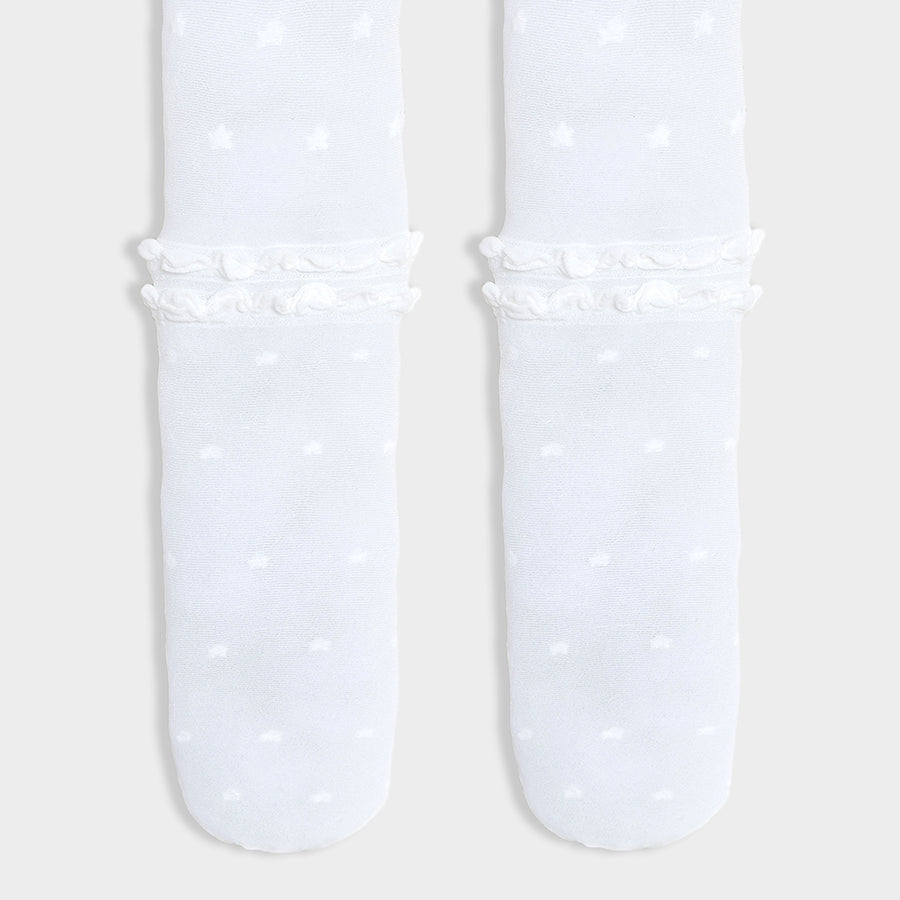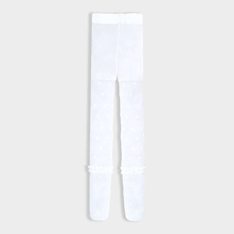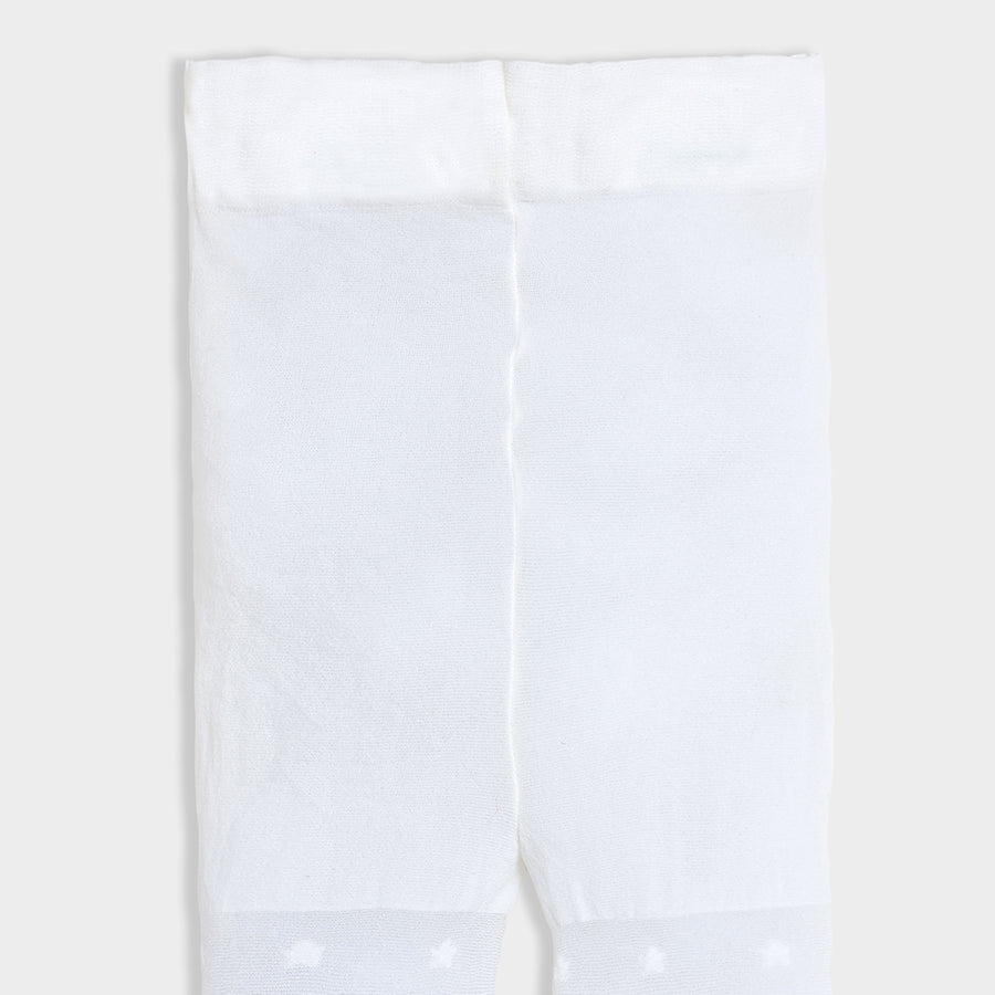 Full-length wearable stockings for girls in soft knit 90% polyamide, and 10% elastane blend for all weather. Features a star-theme design, full-length, legging-style fit for easy wear, and elasticated waist. Available in different sizes for kids 6M-6Y.